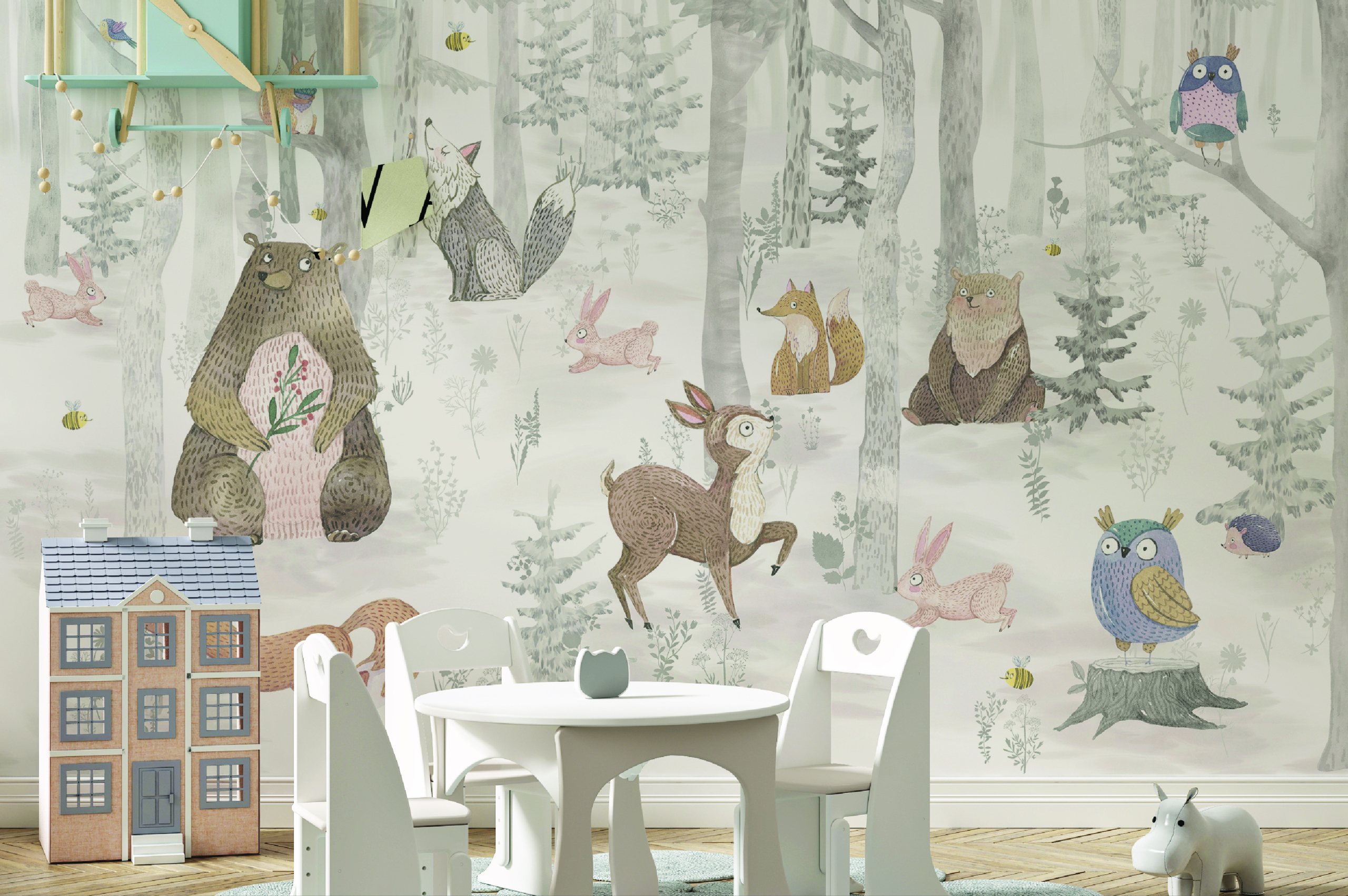 Fototapety ze zwierzętami to niezwykle szeroka gama motywów. Wśród nich znajdują się zarówno urocze zwierzątka leśne – jelenie, lisy, zajączki czy niedźwiedzie – które wprowadzają do wnętrza spokojny, naturalny klimat. Delikatne, często akwarelowe grafiki w stonowanych barwach świetnie sprawdzają się w pokojach, gdzie liczy się harmonia i wyciszenie. To idealne rozwiązanie dla młodszych dzieci, które potrzebują przytulnego i bezpiecznego otoczenia.