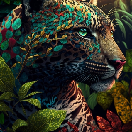 Fototapeta Tajemnicza Pantera w Barwnych Liściach