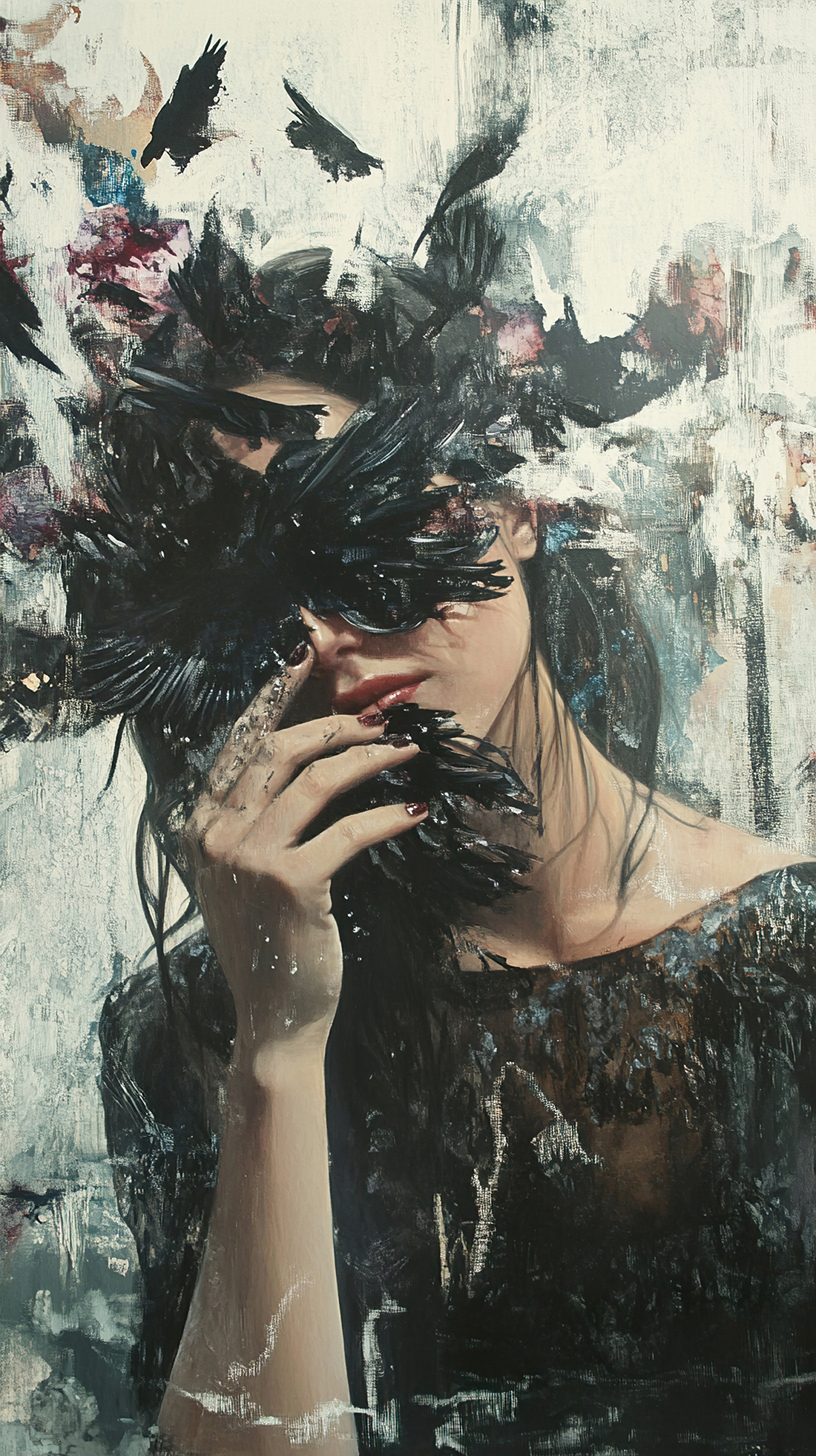 Fototapeta „Czarne skrzydła tajemnicy” to wyrafinowana dekoracja ścienna, która łączy w sobie symbolikę, elegancję i artystyczną głębię. Motyw rozłożonych czarnych skrzydeł — osadzony na części twarzy kobiety — wprowadza do wnętrza aurę tajemnicy, siły oraz subtelności. Kompozycja przyciąga wzrok i dodaje przestrzeni charakteru, doskonale sprawdzając się w salonie, gabinecie, bibliotece czy przestrzeni relaksu. Fototapeta „Czarne skrzydła tajemnicy” to propozycja dla osób ceniących minimalistyczny design z symboliką, graficznie wyraziste motywy oraz wnętrza o głębi emocjonalnej i artystycznym wymiarze.