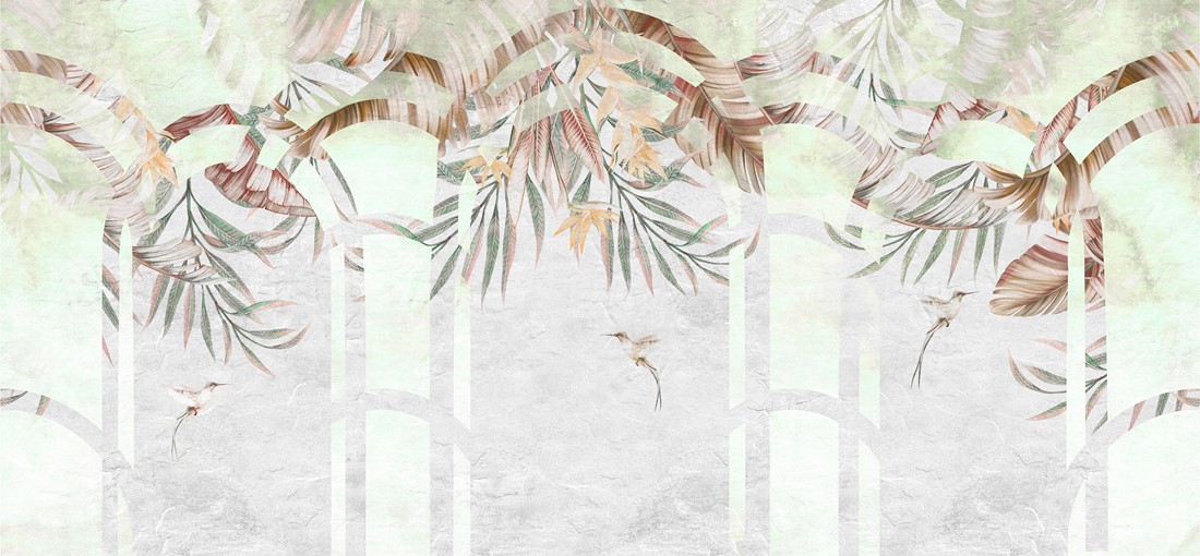 „Egzotyczne Liście w Dekoracyjnych Łukach” fototapeta, plakat, obraz dekoracyjny