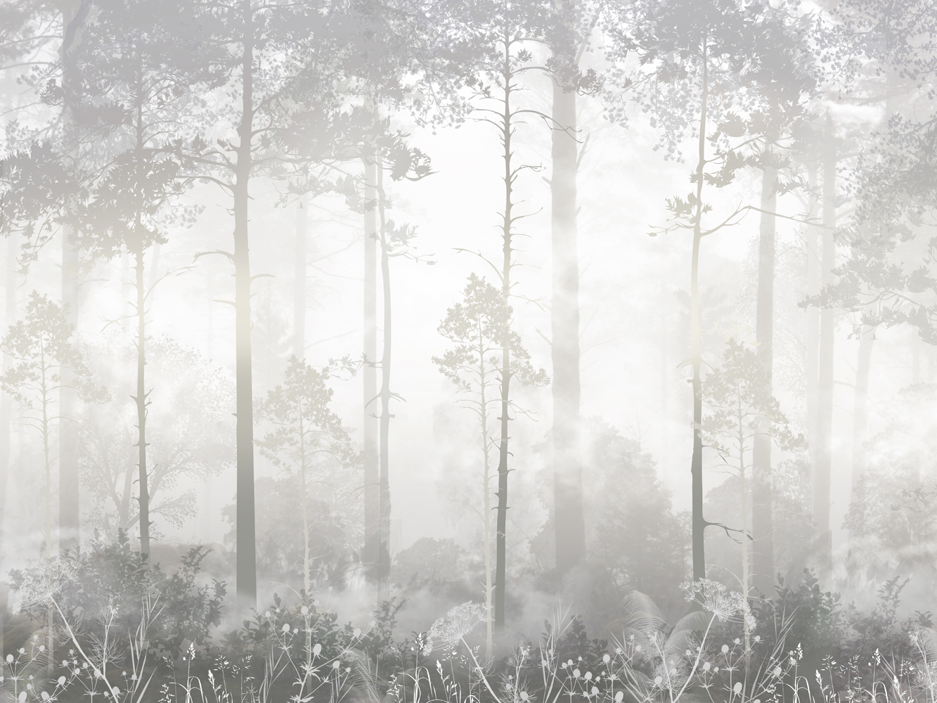 Jasna, stonowana kolorystyka oparta na odcieniach bieli, szarości i subtelnej zieleni sprawia, że fototapeta mglisty las doskonale rozjaśnia wnętrze i optycznie je powiększa. Motyw lasu w mgle wprowadza naturalny rytm i poczucie bliskości przyrody, idealnie komponując się z aranżacjami w stylu skandynawskim, japandi, minimalistycznym oraz nowoczesnym.