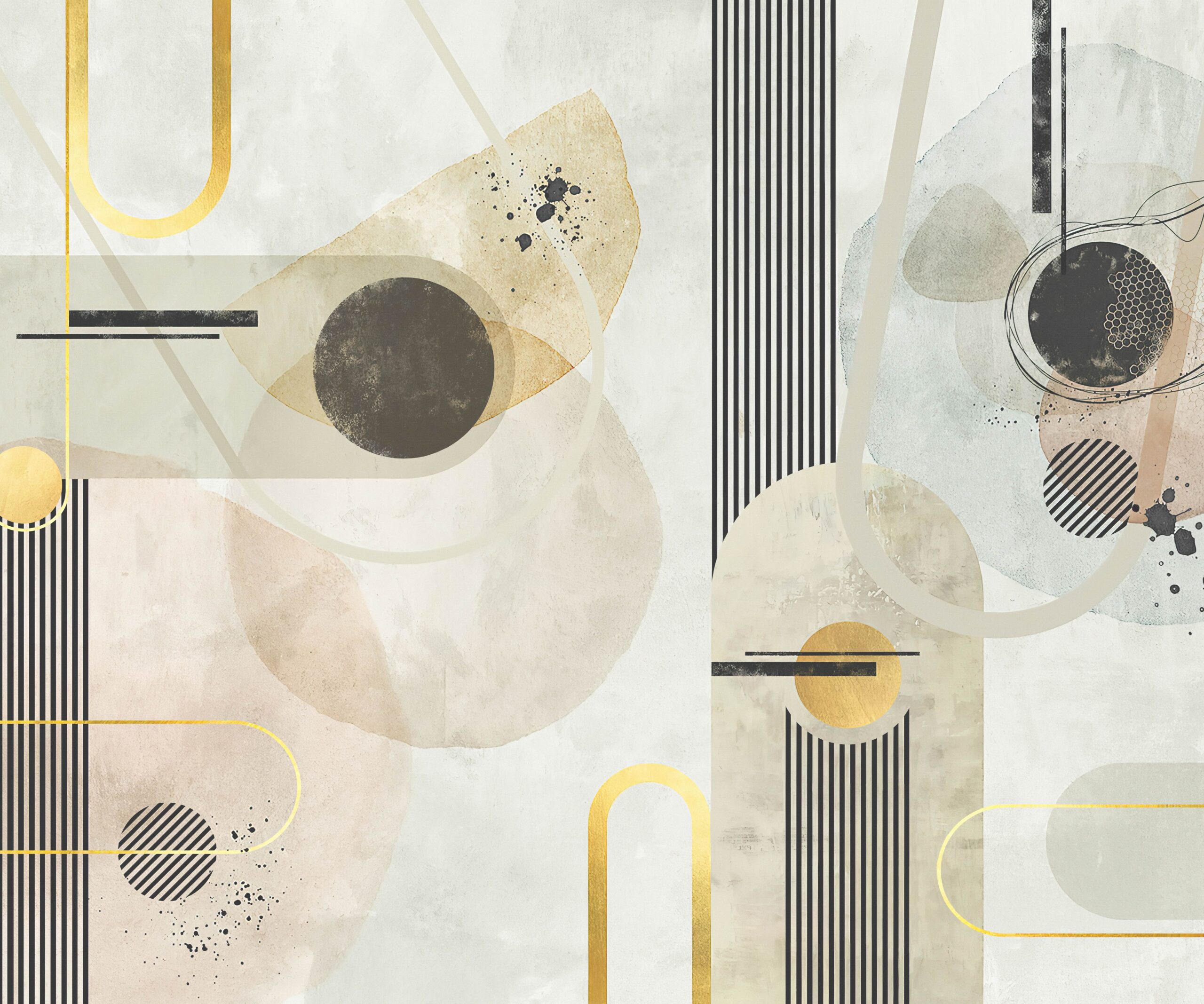 Odkryj piękno współczesnej sztuki w domowym zaciszu dzięki fototapecie „Geometryczny Szept”. Ta unikalna kompozycja łączy delikatne formy geometryczne z subtelną paletą barw, tworząc harmonijną i elegancką przestrzeń sprzyjającą skupieniu i relaksowi. Ciepłe beże, zgaszone błękity i miękkie szarości przeplatają się z graficznymi liniami, nadając wnętrzu artystyczny, ale nienachalny charakter.