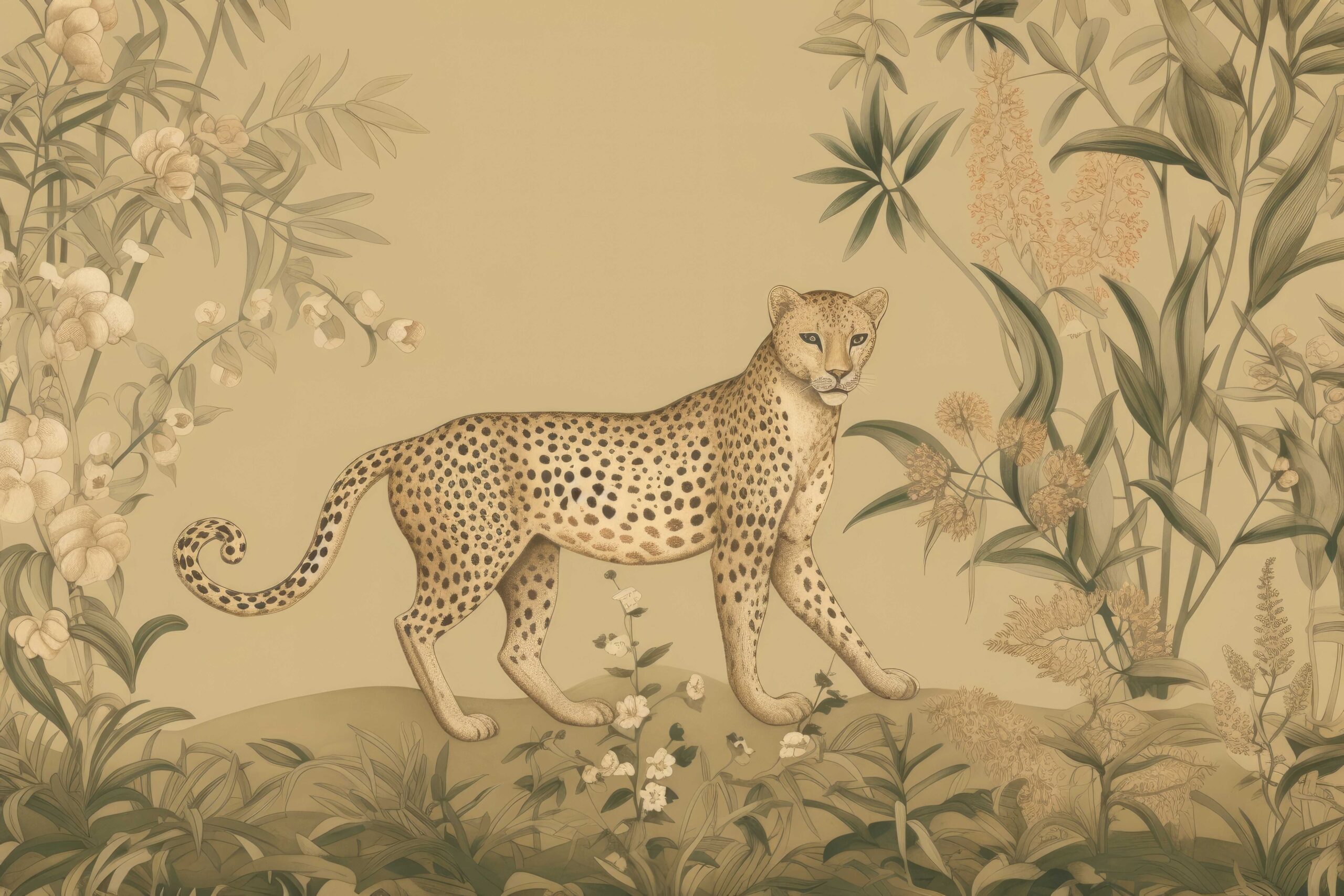 Fototapeta „Ogród Geparda” – dzika elegancja, botaniczna harmonia i artystyczny akcent natury