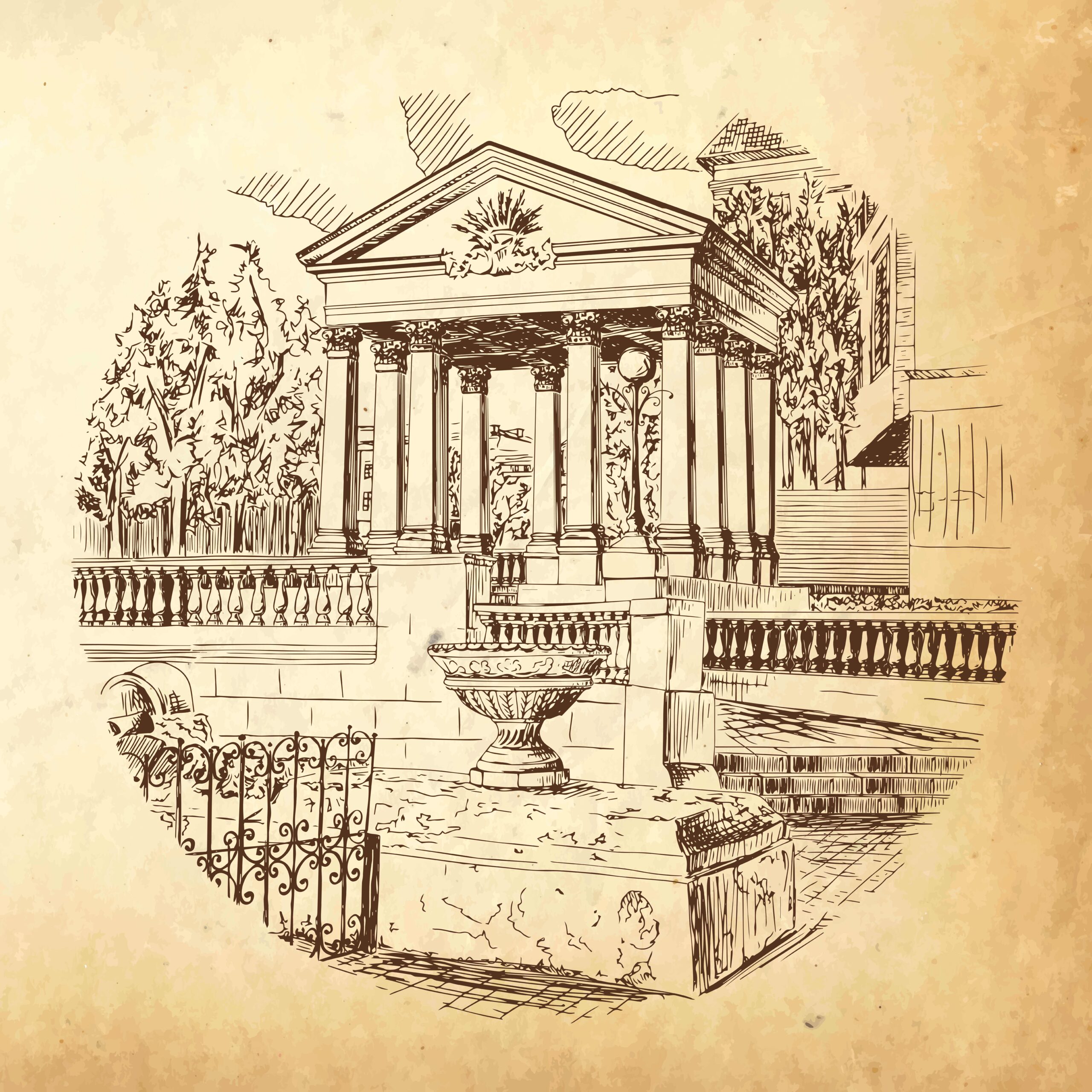 Odkryj magię przeszłości dzięki fototapecie „Świątynia Ciszy”. Ten artystyczny rysunek przedstawiający klasyczną budowlę z kolumnami, kamienną fontanną i subtelnymi detalami architektonicznymi przenosi do świata dawnej elegancji i spokoju. Delikatna kreska, stonowana kolorystyka i wyważona kompozycja sprawiają, że fototapeta staje się wyjątkową ozdobą każdego wnętrza.