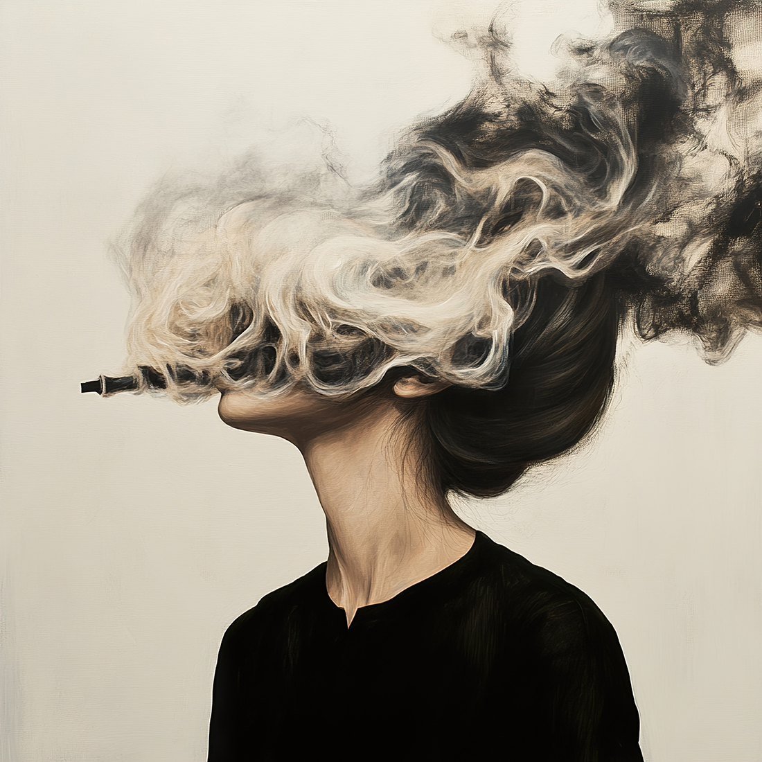 Fototapeta „Ulotna myśl” to subtelna dekoracja ścienna, która wprowadza do wnętrza atmosferę refleksji, delikatności i estetycznej lekkości. Zmysłowe, niemal mgiełkowe plamy dymu unoszącego się po całej twarzy kobiety – tworzą ulotną, marzycielską kompozycję, idealną do salonu, sypialni, gabinetu lub przestrzeni relaksu. Fototapeta pobudza wyobraźnię, sprzyja medytacji i nadaje pomieszczeniu wyciszony, ale pełen emocji charakter. „Ulotna myśl” to propozycja dla osób doceniających minimalistyczny design, artystyczny wdzięk i wnętrza z subtelnym, inspirującym klimatem.