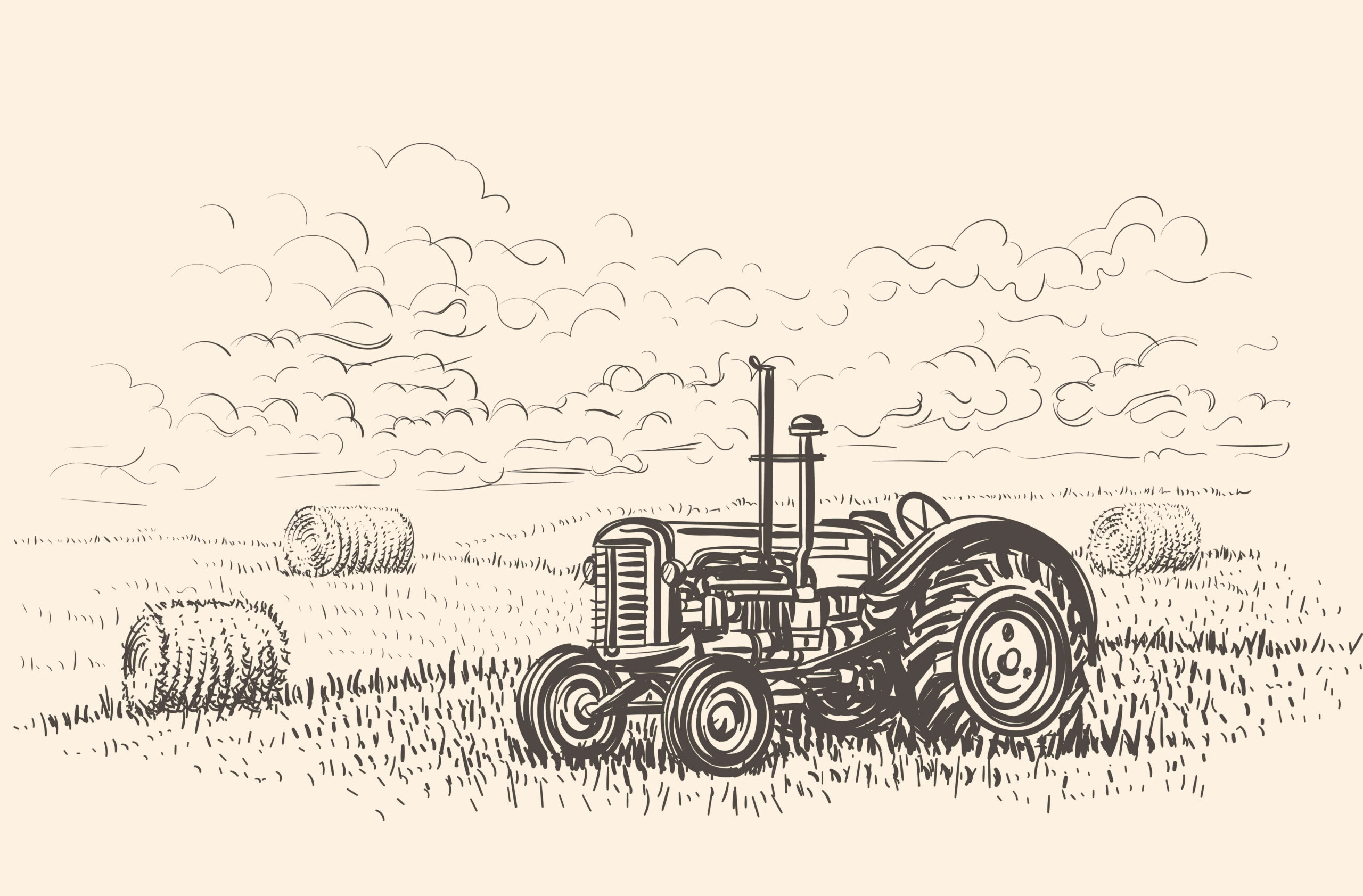 Wprowadź do swojego domu niepowtarzalny klimat dzięki fototapecie „Wiejska Nostalgia”. Ten misternie wykonany szkic traktora na tle pola z belami siana przywołuje wspomnienia prostoty i harmonii wiejskiego życia, nadając przestrzeni ciepłą i przytulną atmosferę. Subtelna, monochromatyczna stylistyka doskonale komponuje się zarówno z klasycznymi, jak i nowoczesnymi aranżacjami wnętrz.