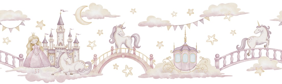Tapeta została zaprojektowana z myślą o pokojach dziecięcych, zwłaszcza dla dziewczynek, ale dzięki eleganckiej kolorystyce z powodzeniem sprawdzi się także w przestrzeniach tematycznych, salonach lub strefach kreatywnych. Jasne, pastelowe barwy — delikatny róż i pastelowe kolory— tworzą estetycznie spójną i uspokajającą paletę, która wprowadza do wnętrza klimat baśni i delikatnej elegancji